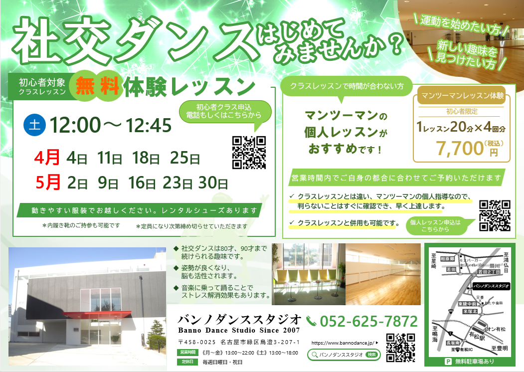 初心者向け無料体験レッスンのご案内です。
