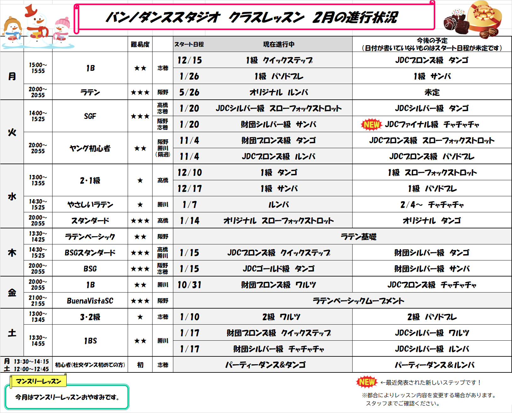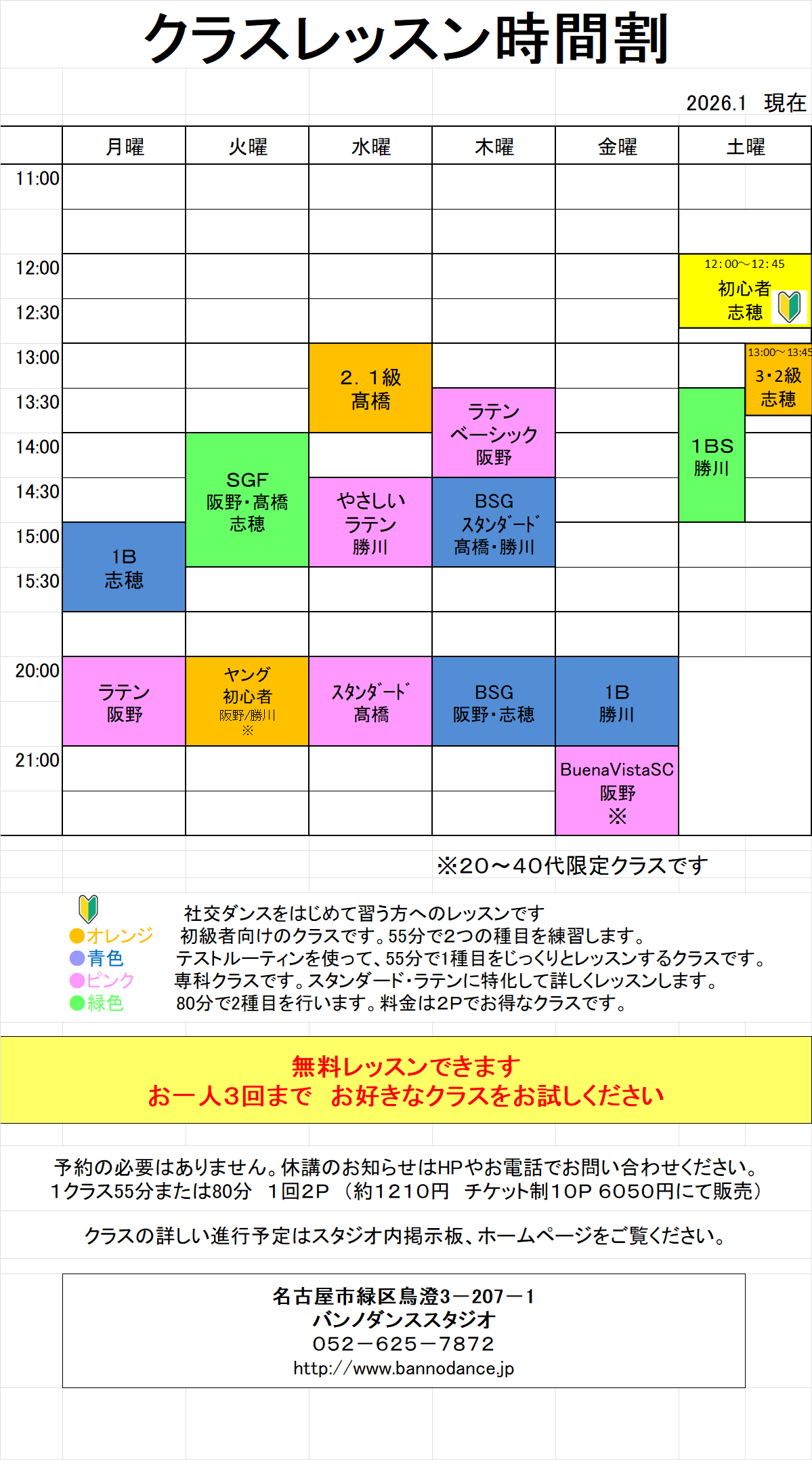 ※クラスレッスンは講師の都合により休講・時間変更する場合があります。