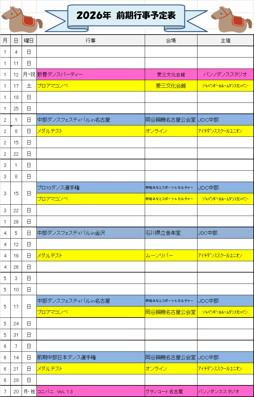 バンノダンススタジオのスケジュールです。
